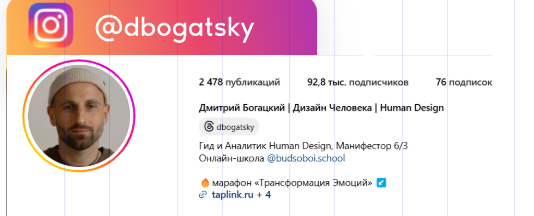 Я давно знала о системе Дизайн Человека от подруг, и недавно познакомилась с прекрасным человеком и специалистом по ДЧ Димой. Он сделал глубокий разбор моей карты по дате рождения.⠀⠀⠀ По ДЧ я ментальный проектор, "исследователь-мученик", человек, который пришел сюда, чтобы исследовать на своем опыте и передавать другим способы, которые работают. Я "прозрачна", моя структура открыта, чтобы я могла легко считывать других людей. У меня нет своей энергии, "внутреннего моторчика", но я могу высветить в каждом человеке его суть и помочь найти путь. ⠀⠀⠀⠀⠀⠀⠀ Дима рассказал мне еще сотню вещей и они на 100% точны. Даже тип физической нагрузки, который мне подходит лучше всего, и главное - моя стратегия успеха и способ принятия решений. А так же - точки "боли", с которыми нужно работать.⠀⠀⠀⠀⠀ Знать свою карту полезно, но не с целью свалить всю вину на звезды, а чтобы точнее выбрать путь развития. Мне очень понравился разбор Димы, он не примешивал субъективных оценок, он действительно профессионал. ⠀⠀⠀⠀⠀⠀⠀ Дима @dbogatsky обучает специалистов по Дизайну Человека в своей онлайн школе и еще несколько дней проводит личные консультации. Советую вам от души!